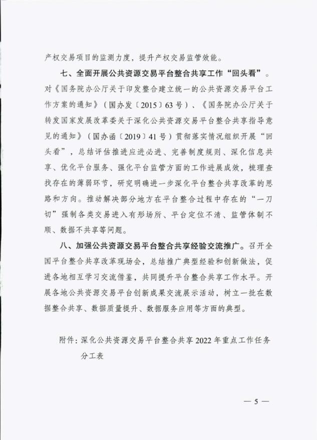 國家發(fā)展改革委辦公廳關(guān)于深化公共資源交易平臺整合共享2022年重點工作任務(wù)的通知