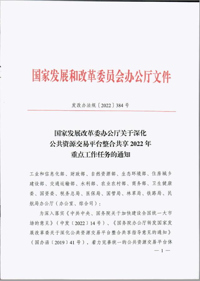 國家發(fā)展改革委辦公廳關(guān)于深化公共資源交易平臺整合共享2022年重點工作任務(wù)的通知 地址:眉山市東坡區(qū)眉州大道東三段186號天天向上5幢1單元11層3號